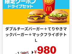 きのうの13時過ぎ。ふとマックが食べたくなったのでクーポンを見てみたら、こちらのクーポンを発見。このドライブスルー店舗専用のお得なクーポン。以前はダブルチーズバーガーとチキンフィレオ、ポテトM2つで1,000円以上していたもので、それを最初...