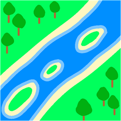 「おっ、川の中州でテントを張れそうだぞ、ラッキー!」