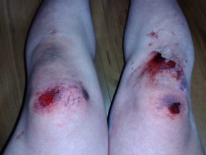 下半身に関しては、両膝を激しく擦ったような痛みと打撲のような鈍い痛みが。