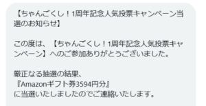 「厳正なる抽選の結果、 『Amazonギフト券』 に当選いたしましたのでご連絡いたします」