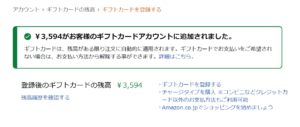 メッセージにはアマギフのコードがあったので、それをAmazonにて入力。