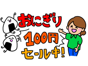 先ほどのセブンイレブンとはうってかわって100円のおにぎりが山のように棚にありました。