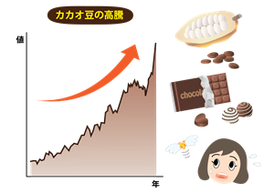 というのも、チョコを使った製品が一気に100円から150円になっていたのです。
